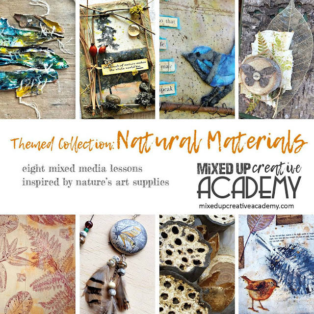 I’m excited to tell you that I have a tutorial available over at Mixed Up Creative Academy for my Touch Of Nature mixed media art journal spread created mainly with found natural materials.